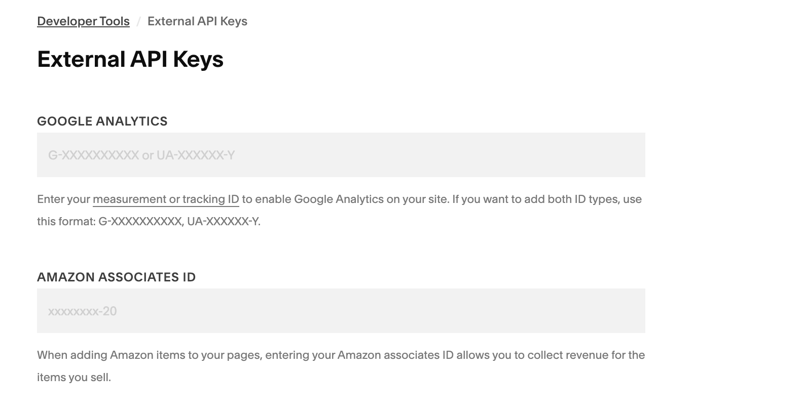 → External API Keys